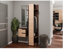 В первую очередь это шкаф. Это самый главный элемент прихожей комнаты, где хранятся вещи, одежда и разные предметы. По своей конструкции шкафы могут быть разные, исходя от самого помещения и его размеров. Но самым популярным и вместительным считается шкаф-купе. Моделей сейчас существует очень много. Расцветку предмета мы подбираем в соответствии с нашим помещением. Устанавливают шкаф возле самой длинной стены, а если конструкция небольшая, тогда можно дать ей место в углу. Мебель должна иметь несколько секций в виде полок, ящиков, тумбочек.